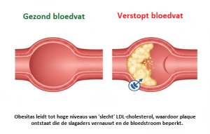 Obesitas leidt vaak tot hogere niveaus van “slecht” LDL-cholesterol en triglyceriden, en lagere niveaus van “goed” HDL-cholesterol. Dit draagt bij aan de vorming van plaque in de slagaders (atherosclerose).